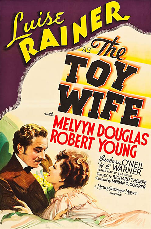 THE TOY WIFE (1938) DIR Richard Thorpe PROD Merian C. Cooper SCR Zoë Akins (play ‘Frou-frou’ [1869] by Henri Meilhac and Ludovic Halévy; play ‘Frou Frou’ [1870] by Augustin Daly) CAM Oliver T. Marsh ED Elmo Veron MUS Edward Ward CAST Luise Rainer (Gilberte, Frou Frou), Melvyn Douglas (Georges Sartoris), Robert Young (Andre Vallaire), Barbara O’Neil (Louise Brigard), H.B. Warner (Victor Brigard), Alma Kruger (Madame Vallaire)