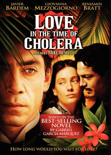 LOVE IN THE TIME OF CHOLERA (2007) DIR Mike Newell PROD Scott Steindorff SCR Ronald Harwood (novel ‘El amore en los tiempos del cólera’ by Gabriel García Márquez) CAM Affonso Beato MUS Antonio Pinto CAST Javier Bardem, Giovanna Mezzogiorno, Benjamin Bratt, Catalina Sandino Moreno, Hector Elizondo, Liev Schreiber, Laura Harring (Sara Noriega)