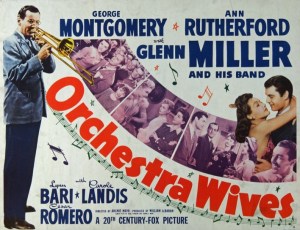 ORCHESTRA WIVES (20th Century Fox, 1942) DIR Archie Mayo PROD William LeBaron SCR Karl Thunberg, Darrell Ware (story by James Prindle) CAST George Montgomery, Ann Rutherford (Connie Ward), Glenn Miller, Lynn Bari, Carole Landis, Cesar Romero