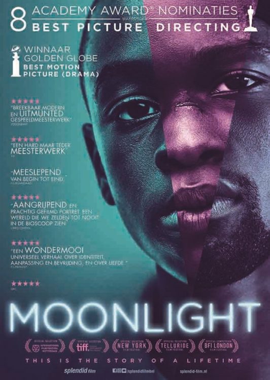 DIR Barry Jenkins PROD Dede Gardner, Jeremy Kleiner, Adele Romanski SCR Barry Jenkins (story by Tarell Alvin McCraney) CAM James Laxton ED Nat Sanders, Joi McMillon MUS Nicholas Britell CAST Naomie Harris (Paula), André Holland (Kevin as Adult), Mahershala Ali (Juan), Janelle Monáe (Teresa), Trevante Rhodes (Chiron as Adult), Ashton Sanders (Chiron as Teen), Jharrel Jerome (Kevin as Teen)