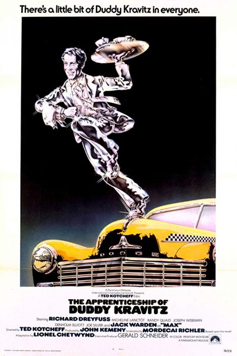 THE APPRENTICESHIP OF DUDDY KRAVITZ (1974) DIR Ted Kotcheff PROD John Kemeny SCR Mordecai Richler, Lionel Chetwynd (novel by Mordecai Richler) CAM Brian West ED Thom Noble CAST Richard Dreyfuss, Micheline Lanctôt, Jack Warden, Randy Quaid, Joseph Wiseman, Denholm Elliott, Henry Ramer