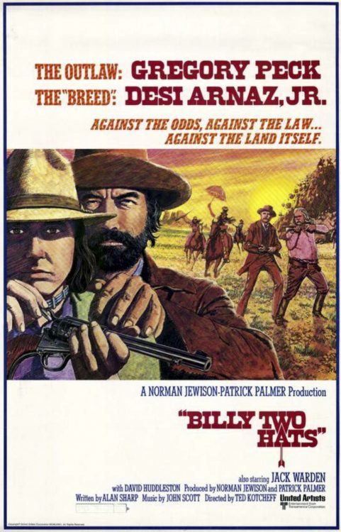 BILLY TWO HATS (1974) DIR Ted Kotcheff PROD Norman Jewison SCR Alan Sharp CAM Brian West ED Thom Noble MUS John Scott CAST Gregory Peck, Desi Arnaz Jr., Jack Warden, David Huddleston, Sian Barbara Allen, John Pearce, Dawn Little Sky, Vince St. Cyr