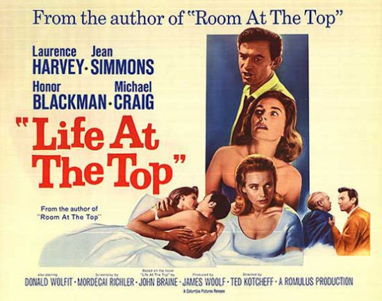 LIFE AT THE TOP (1965) DIR Ted Kotcheff PROD James Woolf SCR Mordecai Richler (novel by John Braine) CAM Oswald Morris ED Derek York MUS Richard Addinsell CAST Laurence Harvey, Jean Simmons, Honor Blackman, Michael Craig, Donald Wolfit, Robert Morley, Margaret Johnston, Edward Fox