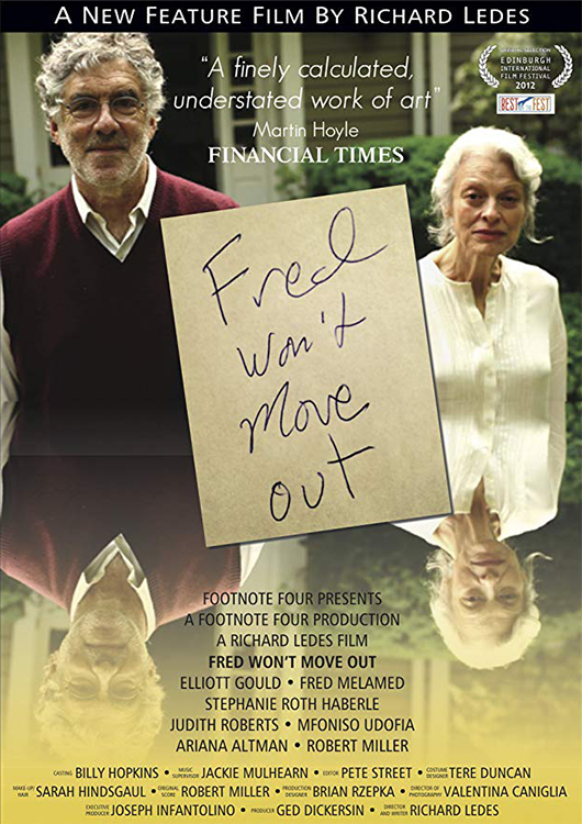 FRED WON’T MOVE OUT (2012) DIR – SCR Richard Ledes PROD Ged Dickerson CAM Valentina Caniglia MUS Robert Miller CAST Elliott Gould (Fred), Fred Melamed, Stephanie Roth Haberle, Judith Roberts, Mfoniso Udofia, Ariana Altman, Robert Miller, Ariana Altman, Richard Ledes