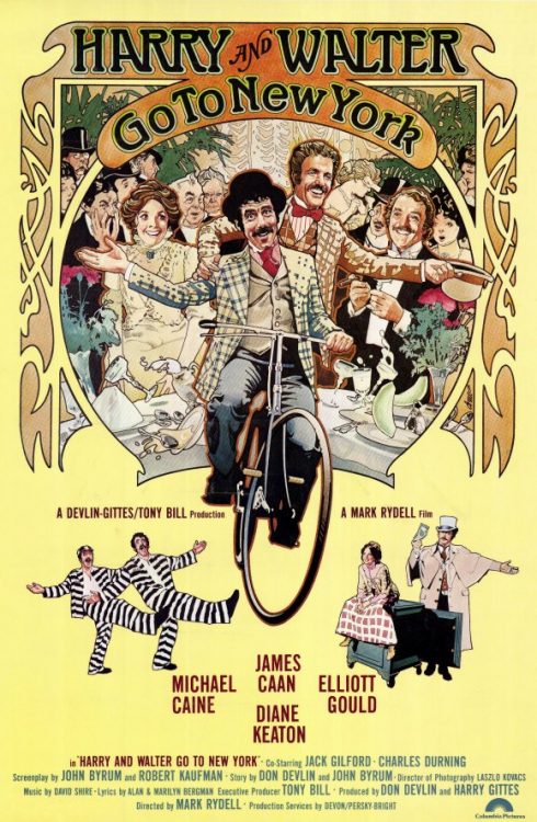 HARRY AND WALTER GO TO NEW YORK (1976) DIR Mark Rydell PROD Don Devlin, Harry Gittes SCR John Byrum, Robert Kaufman (story by John Byrum, Don Devlin) CAM László Kovács ED David Bretherton, Don Guidice MUS David Shire CAST James Caan, Elliott Gould (Walter Hill), Michael Caine, Diane Keaton, Charles Durning, Lesley Ann Warren, Val Avery, Jack Gilford, Dennis Dugan, Carol Kane, Kathryn Grody, David Proval, Michael Conrad, Burt Young