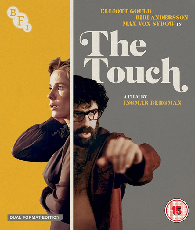 BERÖRINGEN, a.k.a. THE TOUCH (1971) DIR – SCR Ingmar Bergman PROD Ingmar Bergman, Lars-Owe Carlberg [uncredited] CAM Sven Nykvist ED Siv Lundgren MUS Peter Covent, Carl Michael Bellman, Jan Johansson CAST Elliott Gould (David Kovac), Bibi Andersson, Max von Sydow, Sheila Reid, Barbro Hiort of Ornäs, Staffan Hallerstam, Maria Nolgård
