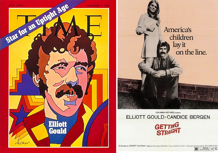 He also has the distinction to have appeared on the cover of TIME Magazine, on September 7, 1970. “There were two covers,” Mr. Gould remembers, “it was the same edition and the same story, but the cover in Europe and Canada was a picture of me from “M*A*S*H” wearing sunglasses, and they said, ‘The Man from “M*A*S*H”’ while the cover in the United States was a painting and said ‘Star for an Uptight Age’ that had to do with “Getting Straight” [1970] which I did with [director] Richard Rush and [co-stars] Candice Bergen and Harrison Ford. That was a great privilege.” Quentin Tarantino says his role in “Getting Straight” as a Vietnam vet who returns to college to get his master’s degree is ‘maybe his most iconic role.’