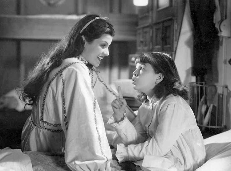 In the 1940s, I didn’t appear in films that much anymore because of the war. I was doing all those bond and camp tours; that had priority over any movie I made. And I always said I would work until I was 21, then I hoped to find Mr. Right and be married for the rest of my life. Well, I got married at 21, unfortunately it wasn’t Mr. Right—but we’re still good friends though. Also, in the 1940s, I had to leave Fox. I didn’t want to, but they weren’t letting me grow up. I was getting all these letters from kids telling me I had grown up with. They wrote, ‘Hey, you’re still doing those movies like you did when you were 10, but you’re not 10 anymore.’ In fact, when I was 15, I wrote one of my own films. It was called “Small Town Deb” [1942]. I wrote exactly about what was happening to me in my real life, only I put it in a small town. It gave me a chance to show in the film what my feelings as a teenager are when the mother isn’t allowing her daughter to grow up, or to be herself and to find herself. The character of the mother [played by Katharine Alexander] didn’t realize she was so concerned about her older daughter [role for Cobina Wright], and she really didn’t take into her heart the situation of her younger daughter [Ms. Wither’s part] who really needed her help and guidance.