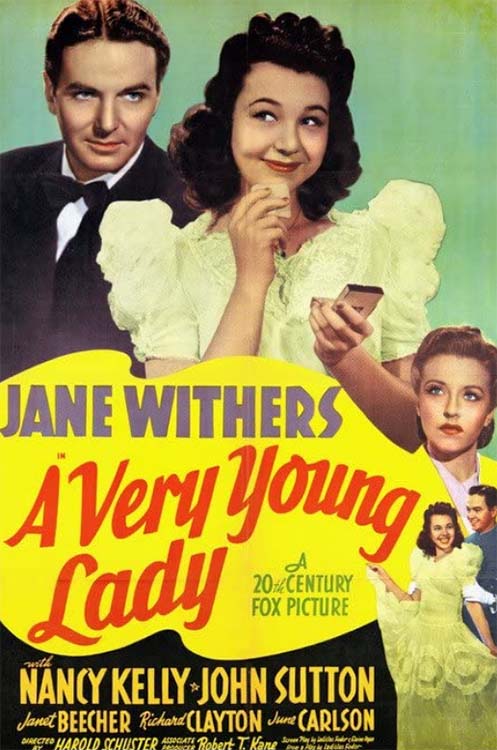 A VERY YOUNG LADY (1941) DIR Harold Schuster PROD Robert Kane SCR Ladislas Fodor, Elaine Ryan (play “Érettségi,” a.k.a. “Matura” [1934] by Ladislas Fodor) CAM Edward Cronjager ED James B. Clark MUS Cyril J. Mockridge, David Buttolph CAST Jane Withers (Kitty Russell), Nancy Kelly, John Sutton, Janet Beecher, Richard Clayton, June Carlson, Cecil Kellaway