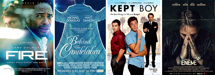 BEHIND THE CANDELABRA (2013) DIR – CAM – ED Steven Soderbergh PROD Michael Polaire, Susan Ekins, Gregory Jacobs SCR Richard LaGravenese (book by Scott Thorson, Alex Thorleifson) CAST Michael Douglas, Matt Damon, Scott Bakula, Cheyenne Jackson, Bruce Ramsay, Rob Lowe, Debbie Reynolds, Thure Riefenstein (Maitre d’)