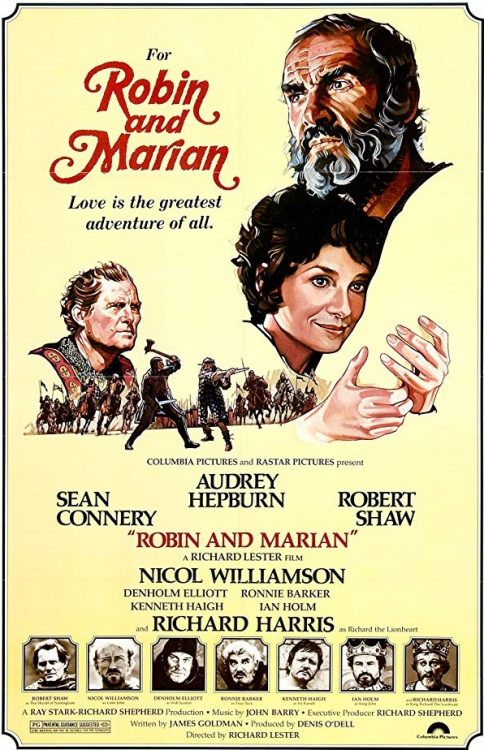 ROBIN AND MARIAN (1976) DIR Richard Lester PROD Denis O’Dell SCR James Goldman CAM David Watkin ED John Victor Smith MUS John Barry CAST Sean Connery, Audrey Hepburn (Maid Marian), Robert Shaw, Richard Harris, Nicol Williamson, Denholm Elliott, Ian Holm