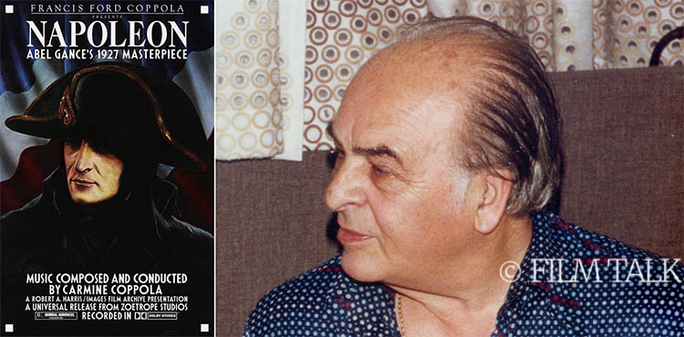 I never had the opportunity to speak with Mr. Coppola, unfortunately; the closest I got was in June 1982 when I got to interview his father, film composer Carmine Coppola (1910-1991), in Casino Den Bosch, in the Netherlands, where he was conducting Het Brabants Orkest at a screening of Abel Gance’s four-hour long silent epic “Napoleon” (1927). This very compelling and engaging twenty-minute interview was done during the intermission in his dressing room. His wife Italia (1912-2004) was there too.