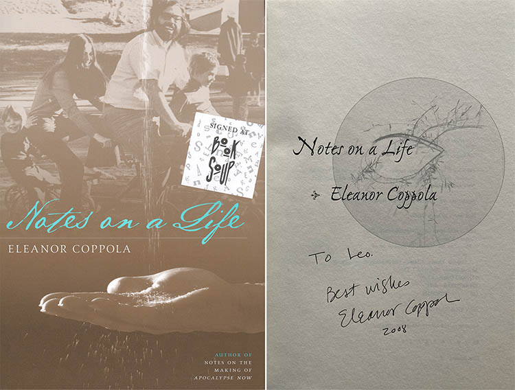 In 2008, more than a quarter of a century later, I met Eleanor Coppola (b. 1936), the wife of the illustrious filmmaker, at a book signing at Book Soup when she was promoting her latest book “Notes on a Life” which gives an insightful look into the creative vision that drives her husband; in her book, she also describes their daughter Sofia’s rise to fame. During this event, I briefly talked with her about her previous book, “Notes on the Making of “Apocalypse Now”,” which recorded the film’s journey from 1976 until 1979. And in 2016, I had a written interview with filmmaker Roman Coppola (b. 1965), their second of three children.