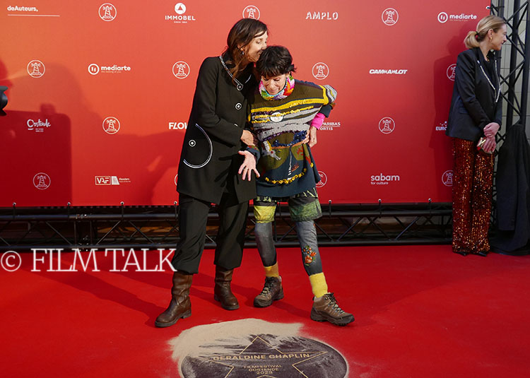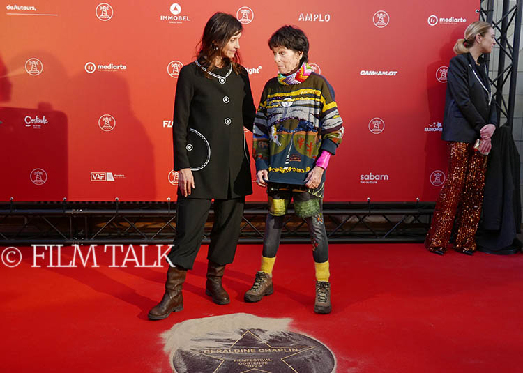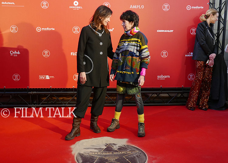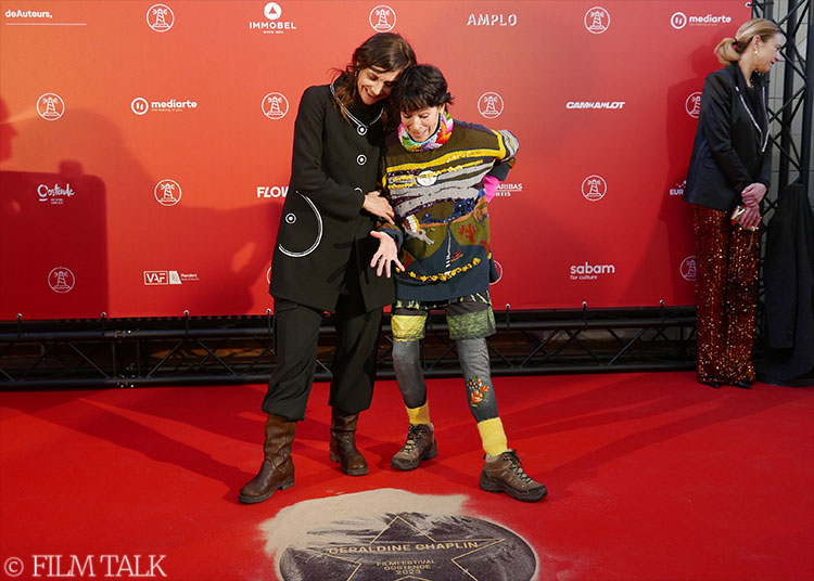 Geraldine Chaplin during the unveiling of her star at the Ostend Film Festival, with actress Natali Broods, Master of the 2023 edition of the Festival, and Samvel Tadevossian, Ms. Chaplin’s co-star in “Luka” | Jempi WelkenhuyzenGeraldine Chaplin with her star | Jempi WelkenhuyzenHer father’s hands and feet were never immortalized in cement on Grauman’s Theater’s famous forecourt in Hollywood. So Geraldine Chaplin took matters into her own hands in a hilarious way | Jempi WelkenhuyzenGeraldine Chaplin | Jempi WelkenhuyzenGeraldine Chaplin signing the Festival’s guest book | Jempi Welkenhuyzen“Luka” screenwriter and director Jessica Woodworth, with Geraldine Chaplin | Film TalkJessica Woodworth, Geraldine Chaplin | Film TalkJessica Woodworth, Geraldine Chaplin | Film TalkJessica Woodworth, Geraldine Chaplin | Film TalkGeraldine Chaplin signing autographs | Film Talk