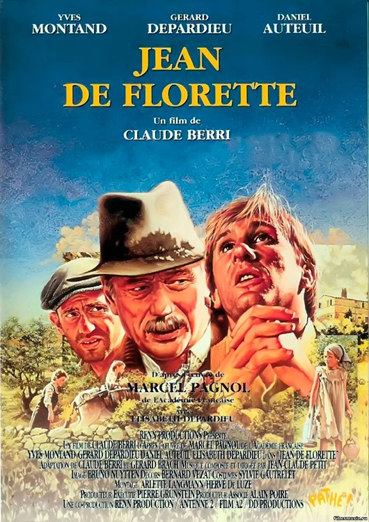 JEAN DE FLORETTE (1986) DIR Claude Berri SCR (novel “L’Eau des collines” [1963] by Marcel Pagnol; adaptation by Claude Berri, Gérard Bach) CAM Bruno Nuytten ED Hervé de Luze, Noëlle Boisson, Sophie Coussein, Catherine Serris, Corinne Lazare, Arlette Langmann, Jeanne Kef MUS Jean-Claude Petit CAST Yves Montand, Gérard Depardieu, Daniel Auteuil, Elisabeth Depardieu, Margarita Lozano, Ernestine Mazurowna