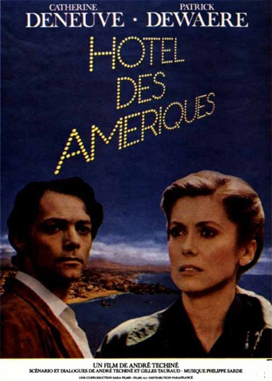 HÔTEL DES AMÉRIQUES (1981) DIR André Téchiné PROD Alain Sarde SCR André Téchiné, Gilles Taurand CAM Bruno Nuytten ED Claudine Merlin MUS Philippe Sarde CAST Catherine Deneuve, Patrick Dewaere, Etienne Chicot, Sabine Haudepin, Dominique Levanant, Josiane Balasko, François Perrot