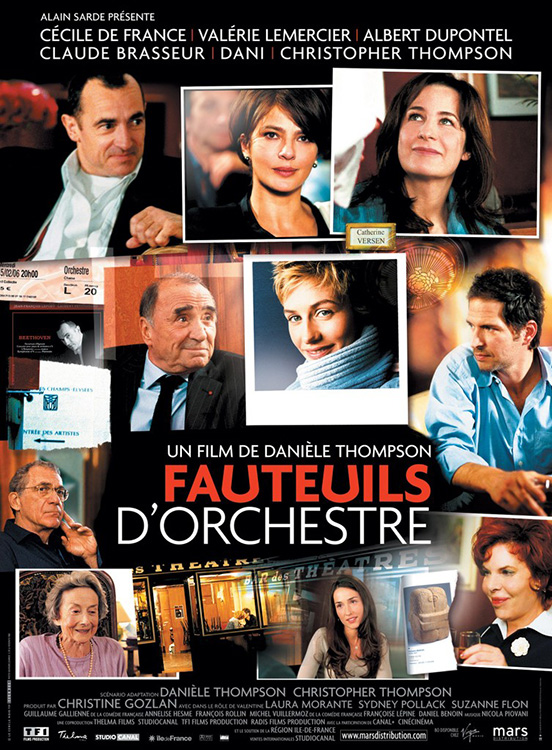 FAUTEUILS D’ORCHESTRE, a.k.a. ORCHESTRA SEATS (2006) DIR Danièle Thompson PROD Christine Gozlan SCR Danièle Thompson, Christopher Thompson CAST Cécile de France (Jessica), Valérie Lemercier, Claude Brasseur, Albert Dupontel, Christopher Thomspon, Laura Morante, Sydney Pollack, Suzanne Flon