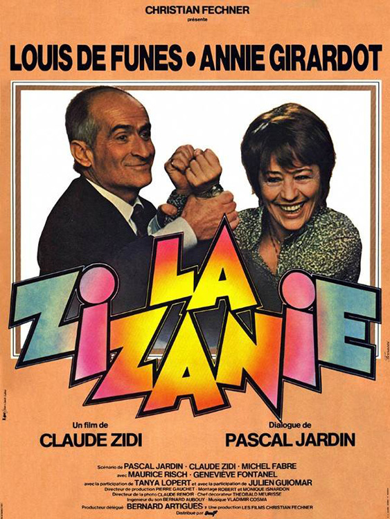 LA ZIZANIE, a.k.a. THE DISCORD (1978) DIR Claude Zidi PROD Marcel Berbert, Christian Fechner SCR Claude Zidi, Pascal Jardin, Michel Fabre CAM Claude Renoir ED Robert Isnardon, Monique Isnardon MUS Vladimir Cosma CAST Louis de Funès, Annie Girardot, Maurice Risch, Jean-Jacques Moreau, Geneviève Fontanel, Jacques François, Martin Provost