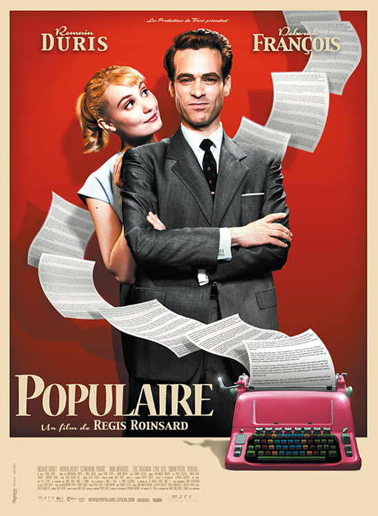 POPULAIRE (2012) DIR Régis Roinsard PROD Alain Attal SCR Régis Roinsard, Daniel Presley, Romain Compingt CAM Guillaume Schiffman ED Sophie Reine, Laure Gardette MUS Robin Coudert, Emmanuel D’Orlando CAST Romain Duris, Déborah François (Rose Pamphyle), Bérénice Bejo, Shaun Benson, Mélanie Bernier, Nicolas Bedos, Miou-Miou, Eddy Mitchell