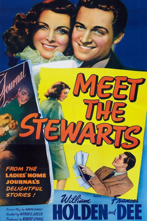 MEET THE STEWARTS (1942) DIR Alfred E. Green PROD Robert Sparks SCR Karen DeWolf (story by Elizabeth Dunn) CAM Henry Freulich ED Al Clark MUS Leo Shuken CAST William Holden, Frances Dee, Grant Mitchell, Ann Gillis (Jane Goodwin), Roger Clark, Marjorie Gateson, Anne Revere, Margaret Hamilton