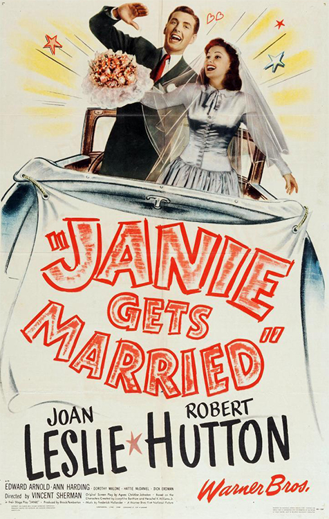 JANIE GETS MARRIED (1946) DIR Vincent Sherman PROD Alex Gottlieb SCR Agnes Christine Johnston (characters created by Josephine Bentham, Herschel V. Williams Jr.) CAM Carl E. Guthrie ED Christian Nyby MUS Frederick Hollander [Friedrich Hollaender] CAST Joan Leslie, Robert Hutton, Edward Arnold, Ann Harding, Dorothy Malone, Hattie McDaniel, Robert Benchley, Hattie McDaniel, Margaret Hamilton, Ann Gillis (Paula Rainey), Mel Tormé