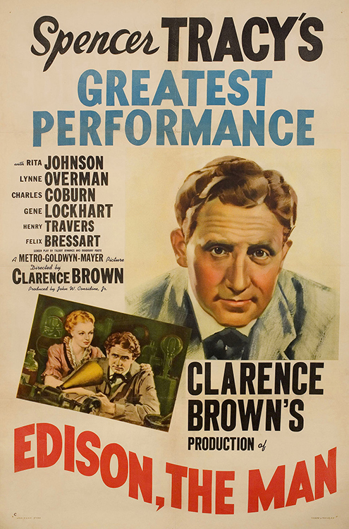 EDISON, THE MAN (1940) DIR Clarence Brown PROD John W. Considine Jr. SCR Talbot Jennings, Bradbury Foote (original story by Dore Schary, Hugo Butler) CAM Harold Rosson ED Frederick Y. Smith MUS Herbert Stothart CAST Spencer Tracy, Rita Johnson, Lynne Overman, Charles Coburn, Gene Lockhart, Henry Travers, Felix Bressart, Peter Godfrey, Ann Gillis (Nancy Gray)