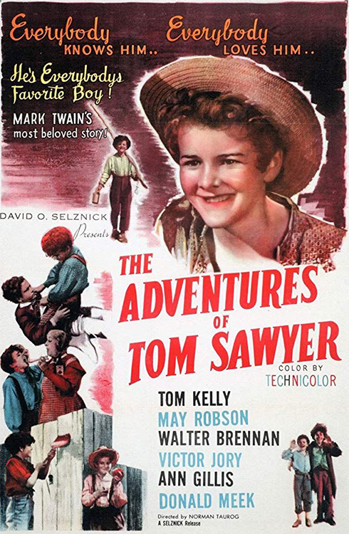 THE ADVENTURES OF TOM SAWYER (1938) DIR Norman Taurog PROD David O. Selznick SCR Jack V.A. Weaver (novel “The Adventures of Tom Sawyer” [1876] by Mark Twain) CAM James Wong Howe ED Margaret Clancey MUS Max Steiner CAST Tommy Kelly, May Robson, Walter Brennan, Victor Jory, David Holt, Jackie Moran, Margaret Hamilton, Cora Sue Collins, Ann Gillis (Becky Thatcher) Spring Byington
