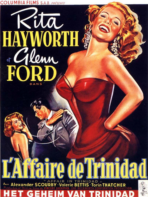 AFFAIR IN TRINIDAD (1952) DIR – PROD Vincent Sherman SCR Oscar Saul, James Gunn (story by Virginia Van Upp, Berne Giler) CAM Joseph Walker ED Viola Lawrence MUS Charles Duning CAST Rita Hayworth, Glenn Ford, Alexander Scourby, Valerie Bettis, Torin Thatcher, Howard Wendell, Juanita Moore