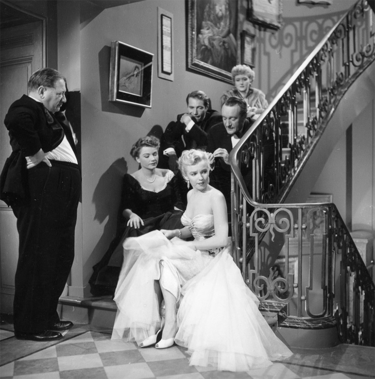 Glittering in the center of “All About Eve” is a brief supporting performance by Marilyn Monroe as Addison DeWitt’s date at Margo’s party, playing a young starlet who intends on advancing her career by befriending powerful men. “All About Eve” and John Huston’s film noir drama “The Asphalt Jungle,” released earlier that same year, launched her career. In “All About Eve,” she was already the Marilyn Monroe, in every detail. In her brief scenes, surrounded by actors much more experienced, she is all you look at. That’s not a coincidence; those who saw “All About Eve” in 1950, when she was unknown, also singled her out.