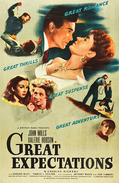 GREAT EXPECTATIONS (1946) DIR David Lean PROD Ronald Neame SCR (adaptation by Ronald Neame, David Lean, Anthony Havelock-Allan, Kay Walsh, Cecil McGivern; novel “Great Expectations” [1861] by Charles Dickens) CAM Guy Green ED Jack Harris MUS Walter Goehr CAST John Mills, Anthony Wager, Valerie Hobson, Jean Simmons (Young Estella), Bernard Miles, Francis L. Sullivan, Finlay Currie, Alec Guinness