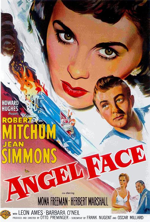 ANGEL FACE (1952) DIR – PROD Otto Preminger SCR Frank Nugent, Oscar Millard (story by Chester Erskine) CAM Harry Stradling Sr. ED Frederic Knudtson MUS Dimitri Tiomkin CAST Robert Mitchum, Jean Simmons (Diane Tremayne), Mona Freeman, Herbert Marshall, Leon Ames, Barbara O’Neil, Kenneth Tobey, Raymond Greenleaf, Jim Backus, Getrude Astor