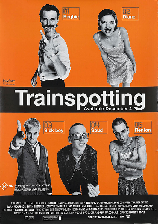 TRAINSPOTTING (1996) DIR Danny Boyle PROD Andrew Macdonald SCR John Hodge (novel “Trainspotting” [1983] by Irvine Welsh) CAM Brian Tufano ED Masahiro Hirakubo CAST Ewan McGregor, Ewen Bremner, Jonny Lee Miller, Kevin McKidd, Robert Carlyle, Kelly Macdonald, Peter Mullan, James Cosmo, John Hodge, Andrew Macdonald