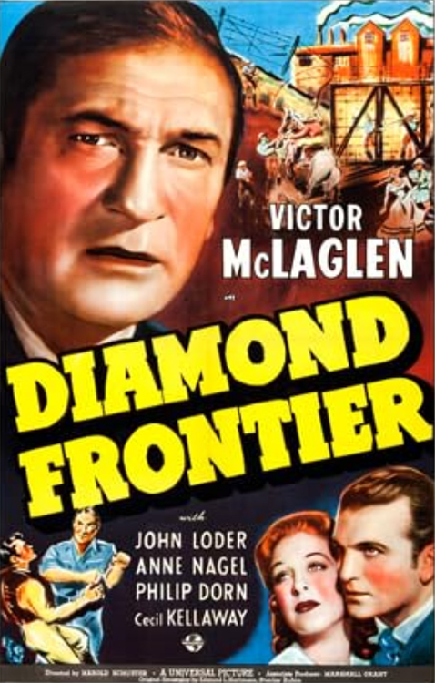 DIAMOND FRONTIER (1940) DIR Harold D. Schuster ASSOC PROD Marshall Grant SCR Stanley Rubin, Edmund L. Hartmann (story “A Modern Monte Cristo” by Stanley Rubin, Edmund L. Hartmann) CAM Milton R. Krasner ED W. Donn Hayes CAST Victor McLaglen, John Loder, Anne Nagel, Philip Dorn, Cecil Kellaway, Francis Ford, Hugh Sothern, Ferris Taylor