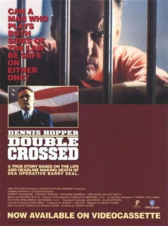 DOUBLECROSSED (1991) DIR Roger Young PROD Ronald Tanet TELEPLAY Roger Young (story by Roger Young, Alex Lasker) CAM Donald M. Morgan ED Benjamin A. Weissman MUS Richard Bellis CAST Dennis Hopper, Robert Carradine, Richard Jenkins, Adrienne Barbeau (Debbie Seal), Don Wood, G. W. Bailey, Danny Trejo, Salvador Levy