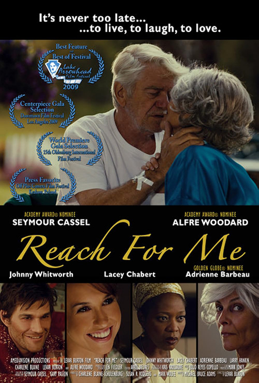 REACH FOR ME (2008) DIR LeVar Burton PROD Charlene Blaine, Susan R. Rodgers, Mark Rolfe SCR Michael Bruce Adams CAM Kris Krosskove ED Avril Beukes MUS Julio Reyes Copello CAST Seymour Cassel, Adrienne Barbeau (Valerie), Alfre Woodard, Johnny Whitworth, Lacey Chabert, Charlene Blaine, Larry Hankin, LeVar Burton, Susan R. Rodgers, Don Agronsky